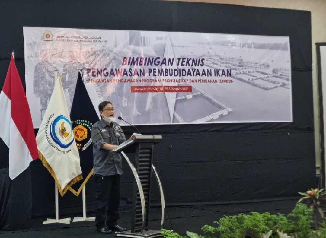 Peningkatan produksi komoditas perikanan budidaya dalam pelaksanaan, diperlukan peran pengawasan sumberdaya kelautan dan perikanan.  Plt. Kepala Dinas Kelautan dan Perikanan Pemprov. Sulsel Ir. H. Sulkaf S. Latief, MM. mengungkapkan hal ini dihadapan  Dirjen Pengawasan Sumber Daya Kelautan dan Perikanan Kementerian Kelautan dan Perikanan (PSDKP KKP) Laksamana Muda TNI Adin Nurawaluddin saat membuka pelaksanaan  Bimtek Pengawasan standar usaha sub sektor pembudidayaan ikan bagi para pengawas perikanan, Kamis (17/02/2022) di Hotel Aryaduta, Makassar.